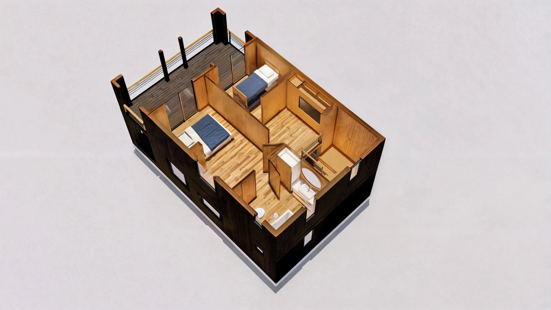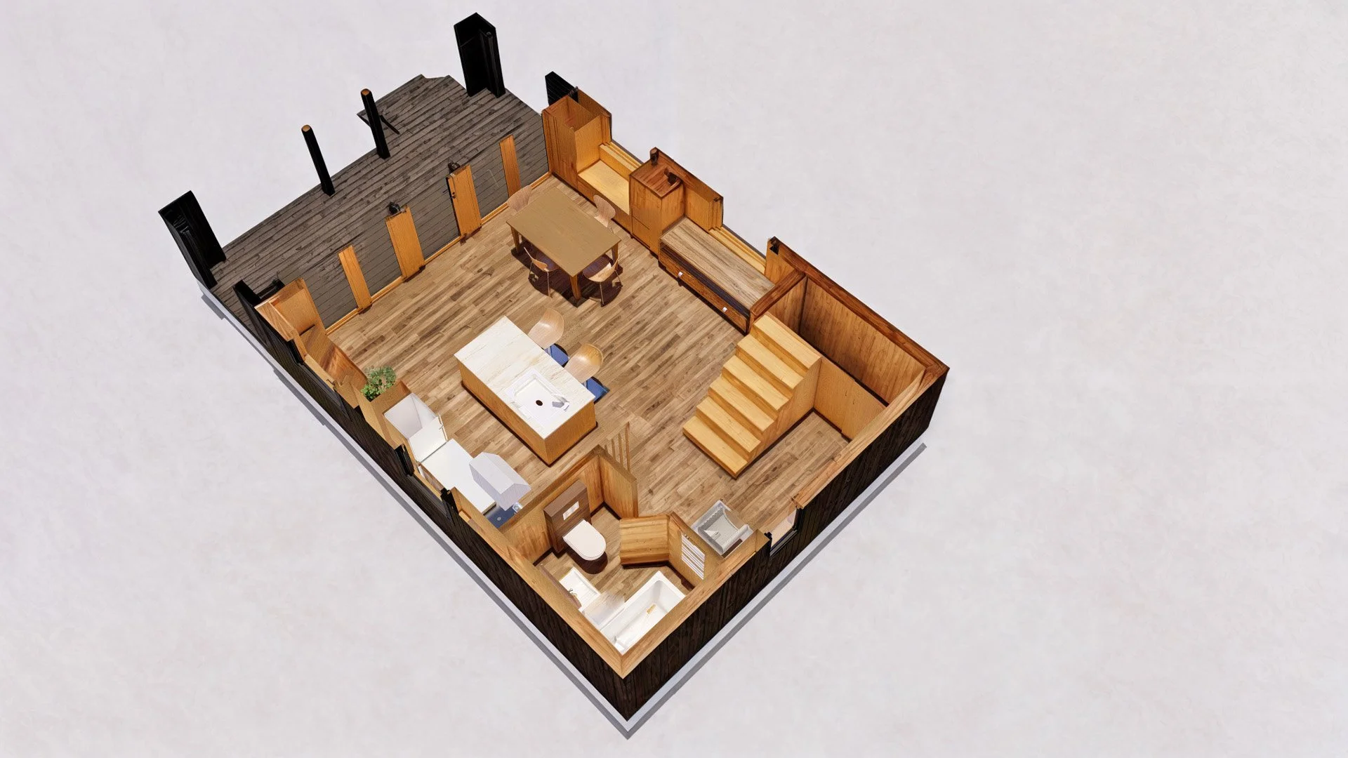 A 14 m² private balcony extends from this level, offering a peaceful outdoor escape with panoramic views of Mount Yotei and the surrounding landscape, making it the perfect place to unwind and enjoy nature.